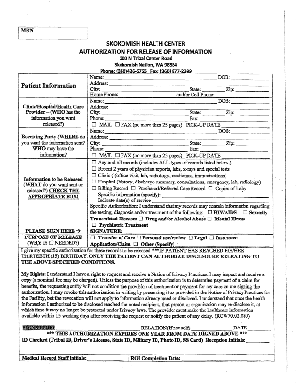 Authorization For Release Of Information